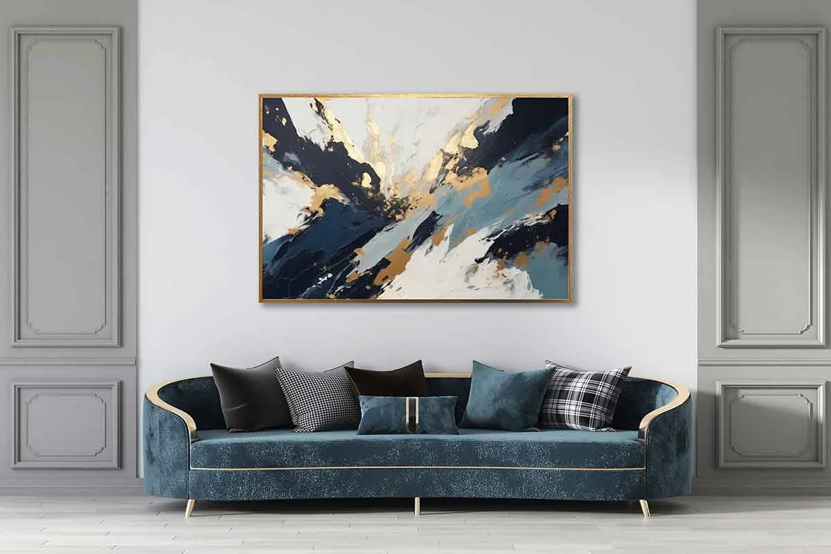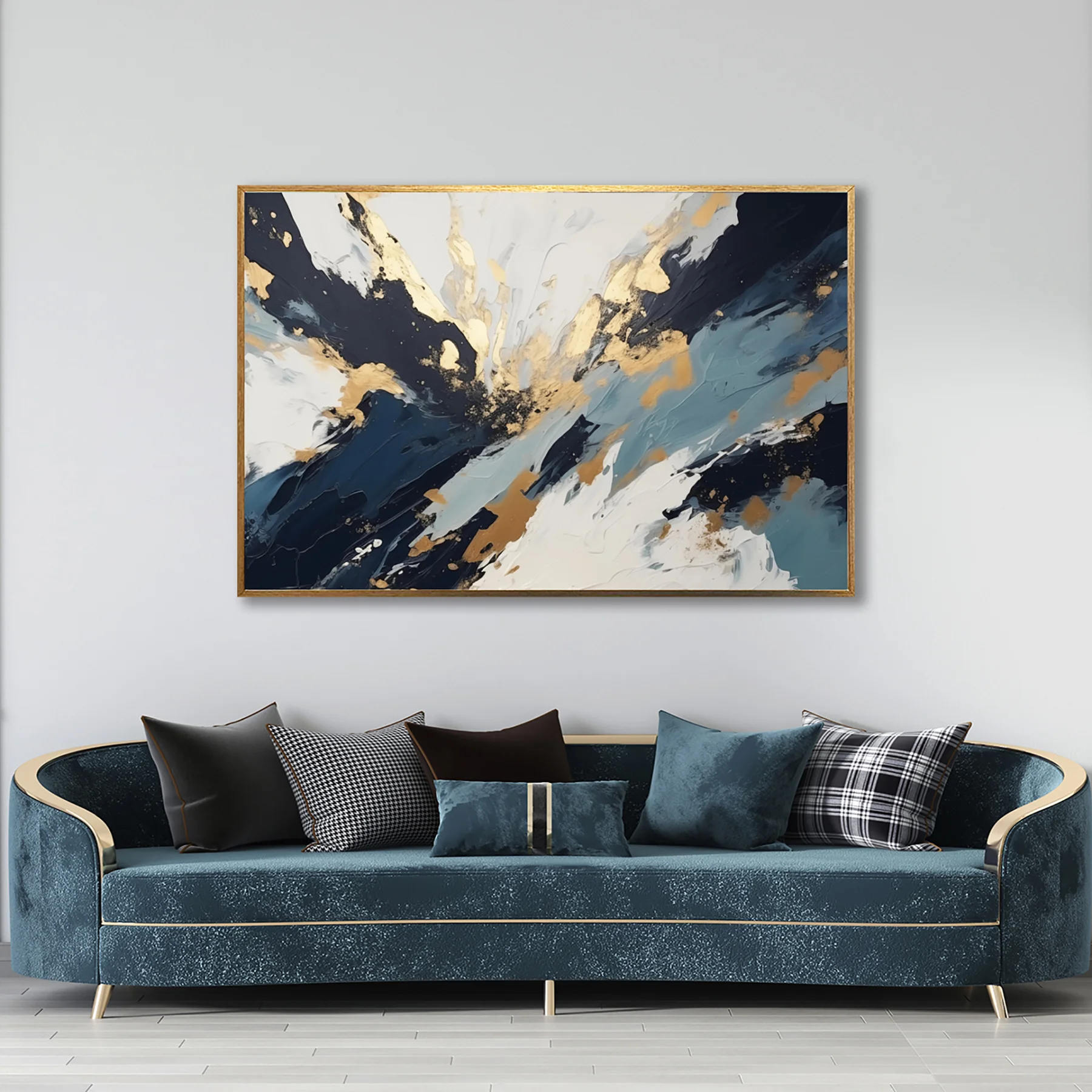 Yağlı Boya Dokulu Tablo Siyah Mavi Altın Soyut Altın Çerçeveli