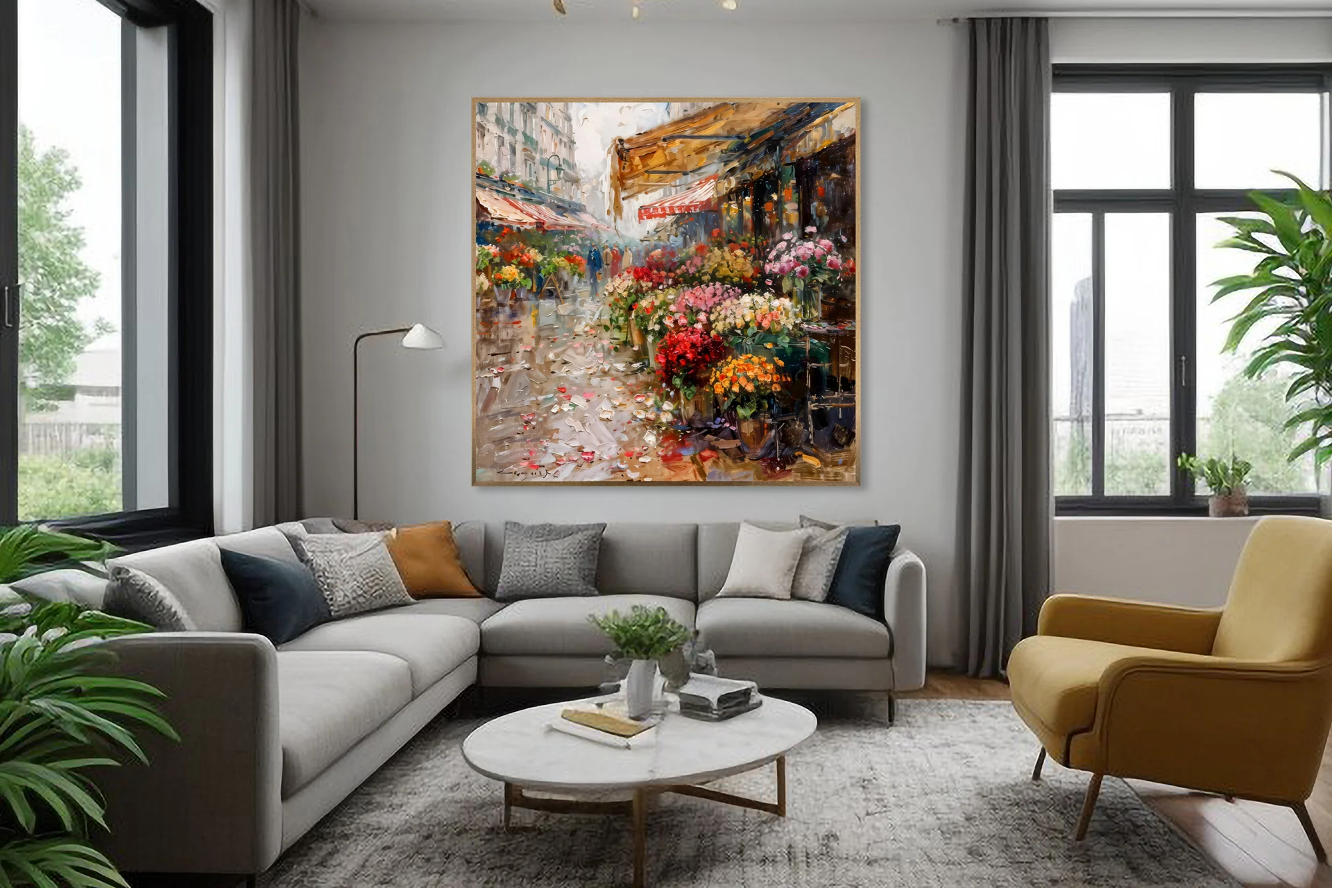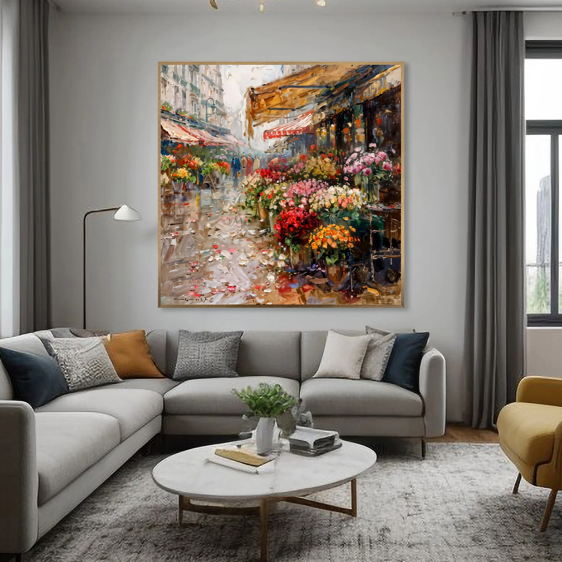 Etiketler: Altın, Çerçeveli, Çiçekçiler, Kare, Sokakta, Yağlı Boya Dokulu Tablo