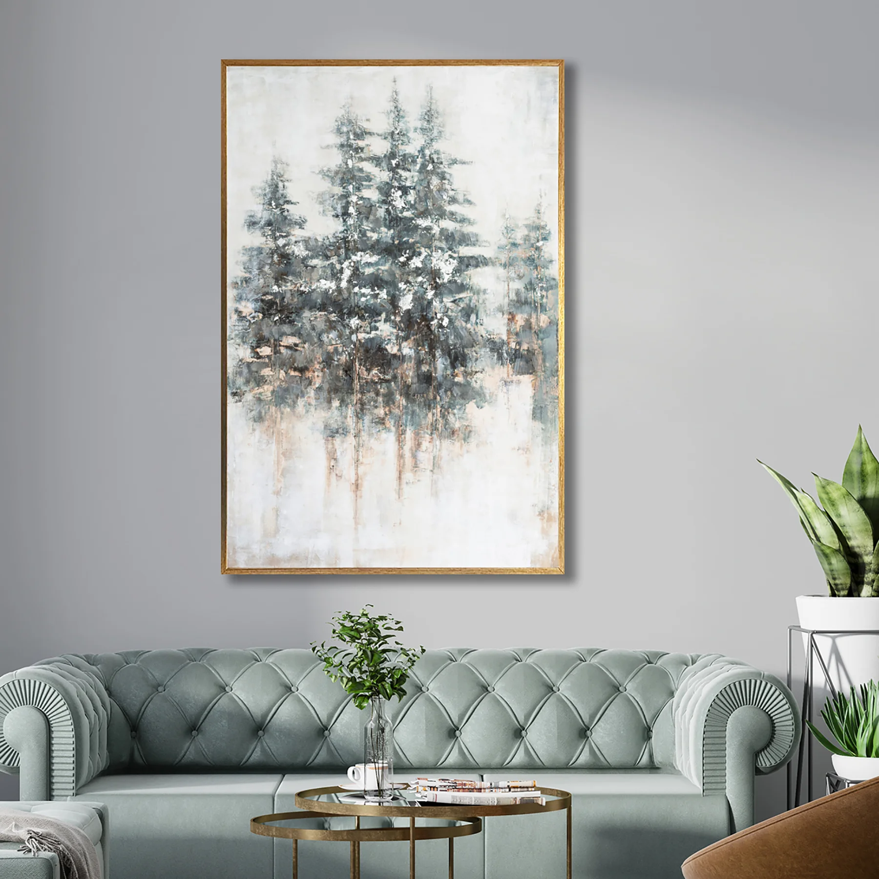 Yağlı Boya Dokulu Tablo Soyut Ağaçlar Manzara Altın Çerçeveli