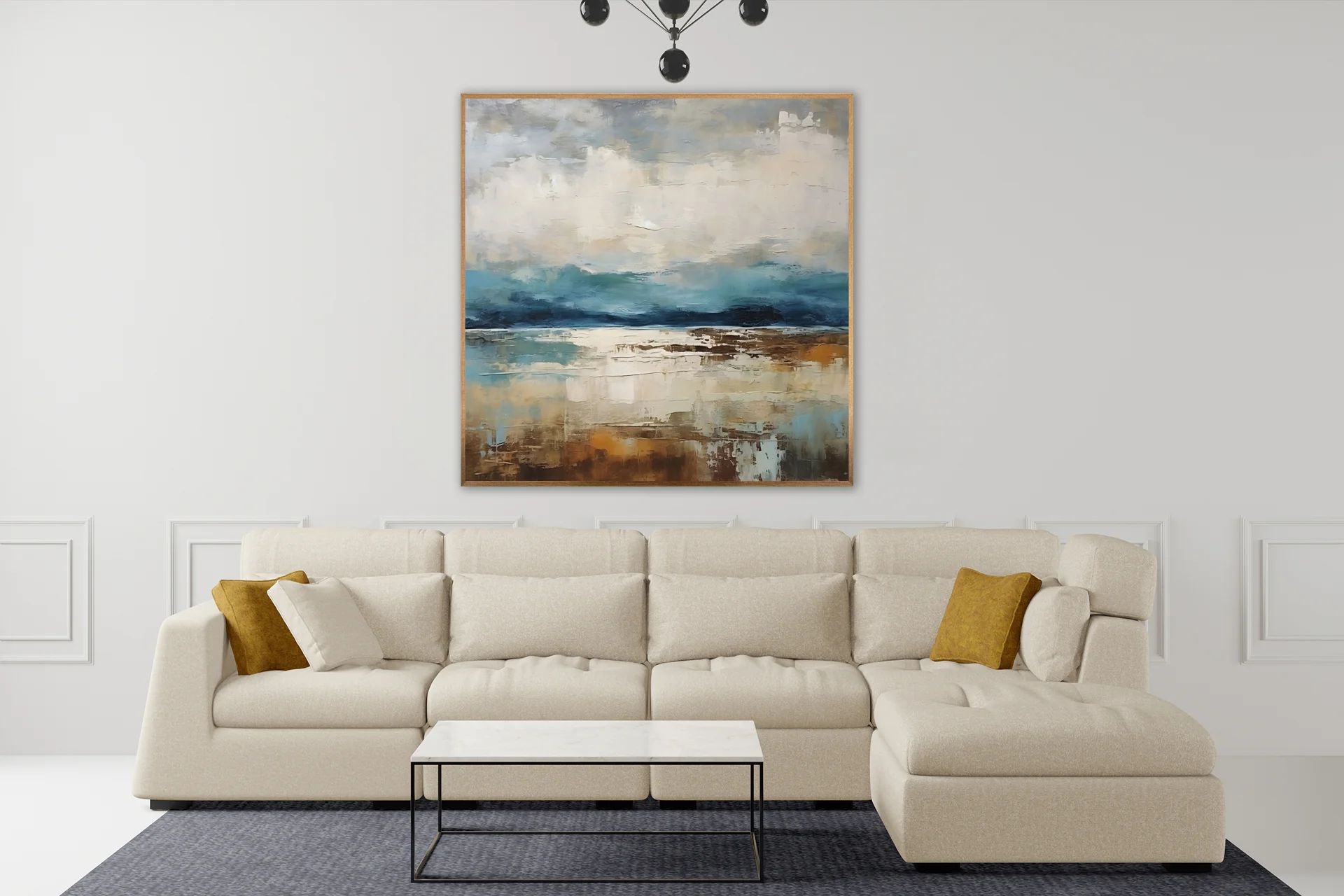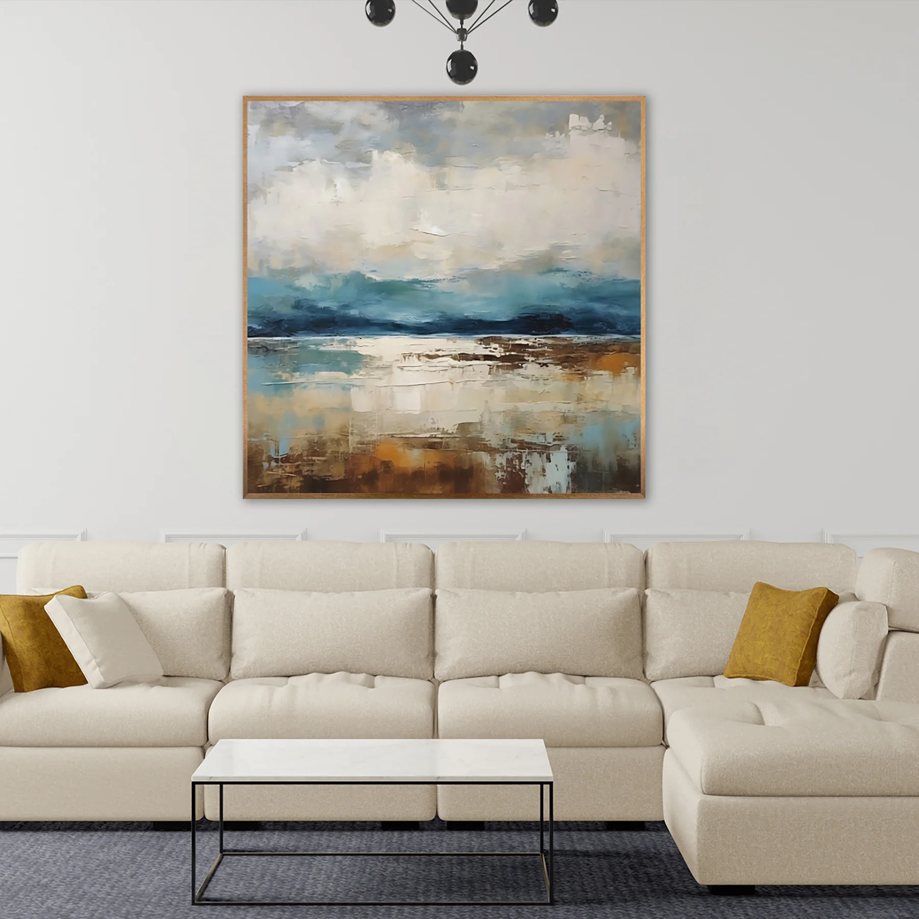 Yağlı Boya Dokulu Tablo Soyut Dağlı Manzara Altın Çerçeveli