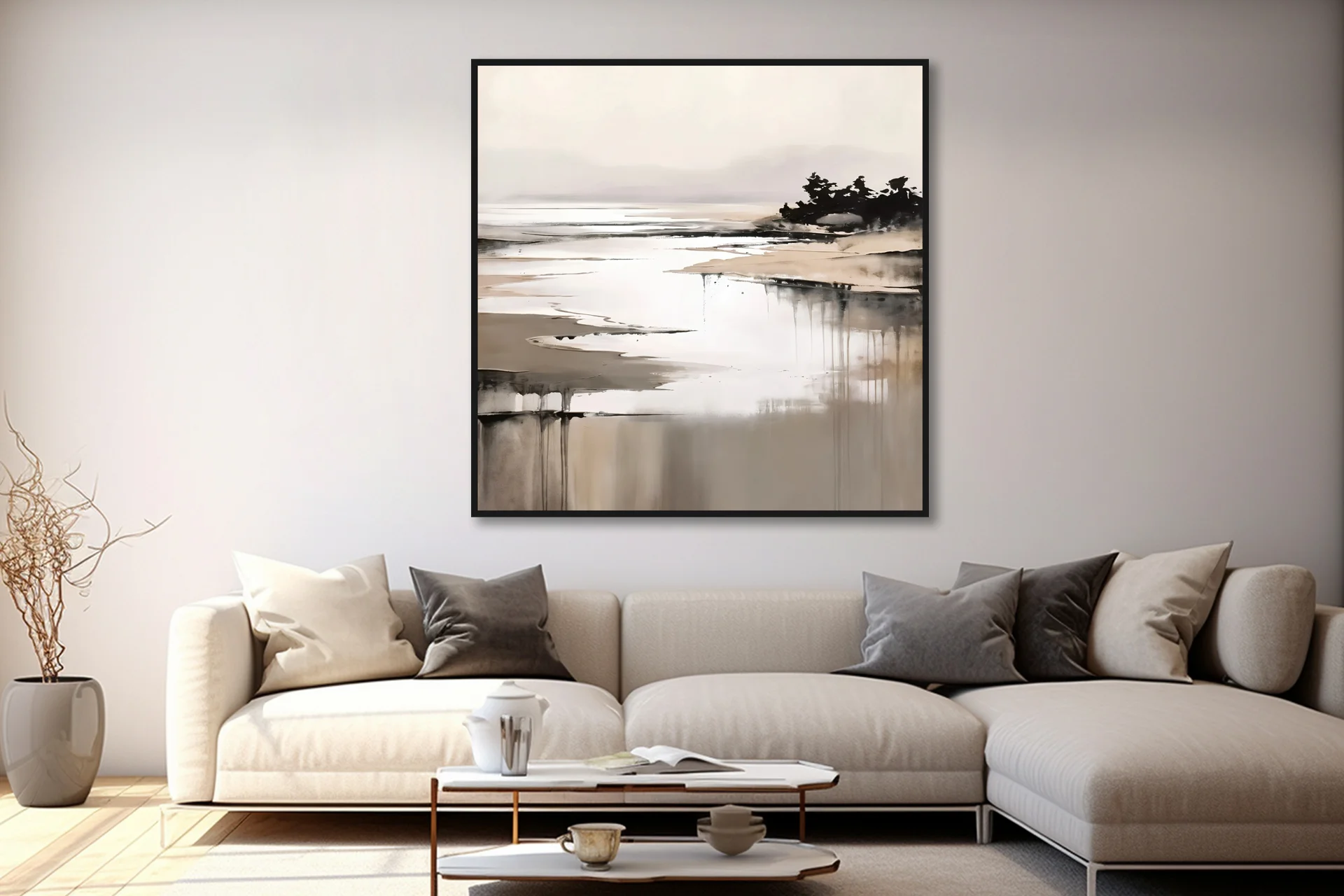 Yağlı Boya Dokulu Tablo Soyut Göl Manzarası Siyah Çerçeveli
