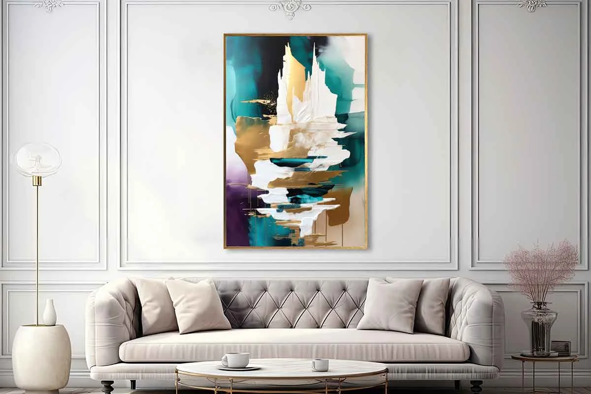 Yağlı Boya Dokulu Tablo Soyut Manzara Altın Çerçeveli