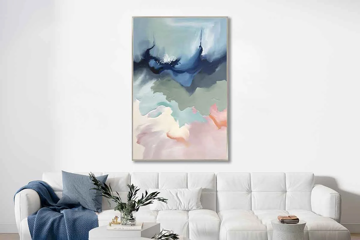 Yağlı Boya Dokulu Tablo Soyut Renkli Dalgalar Gümüş Çerçeveli