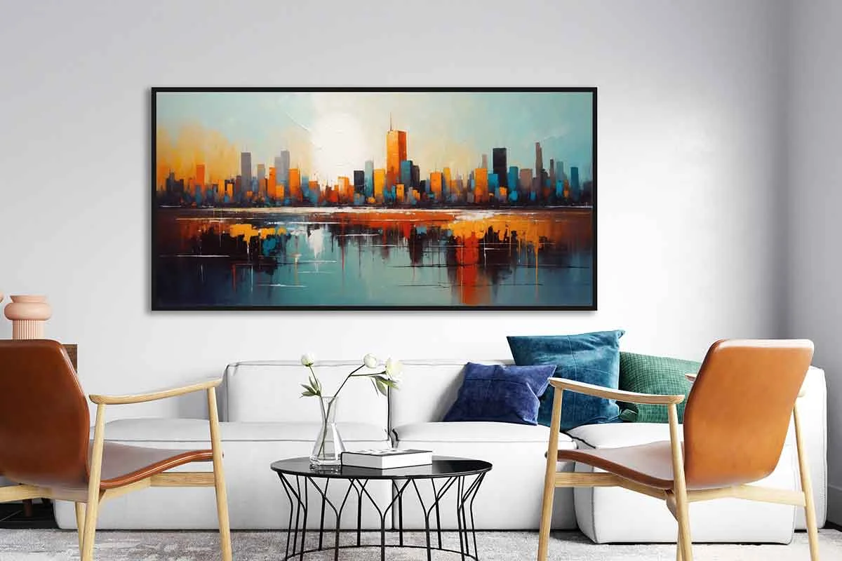 Yağlı Boya Dokulu Tablo Soyut Şehir Manzarası New York Siyah Çerçeveli