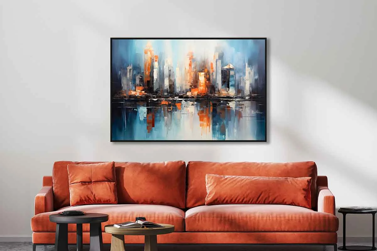 Yağlı Boya Dokulu Tablo Soyut Şehir Manzarası Siyah Çerçeveli