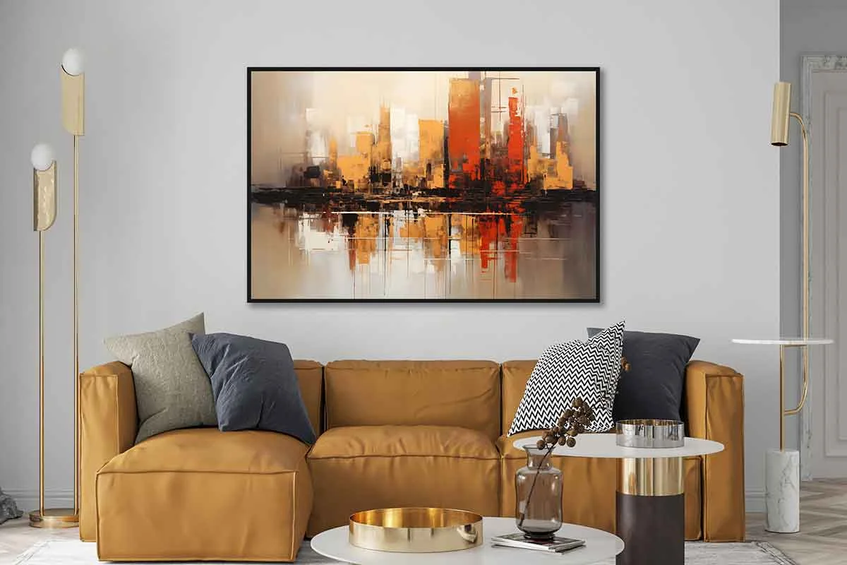 Yağlı Boya Dokulu Tablo Soyut Şehir Manzarası Siyah Çerçeveli