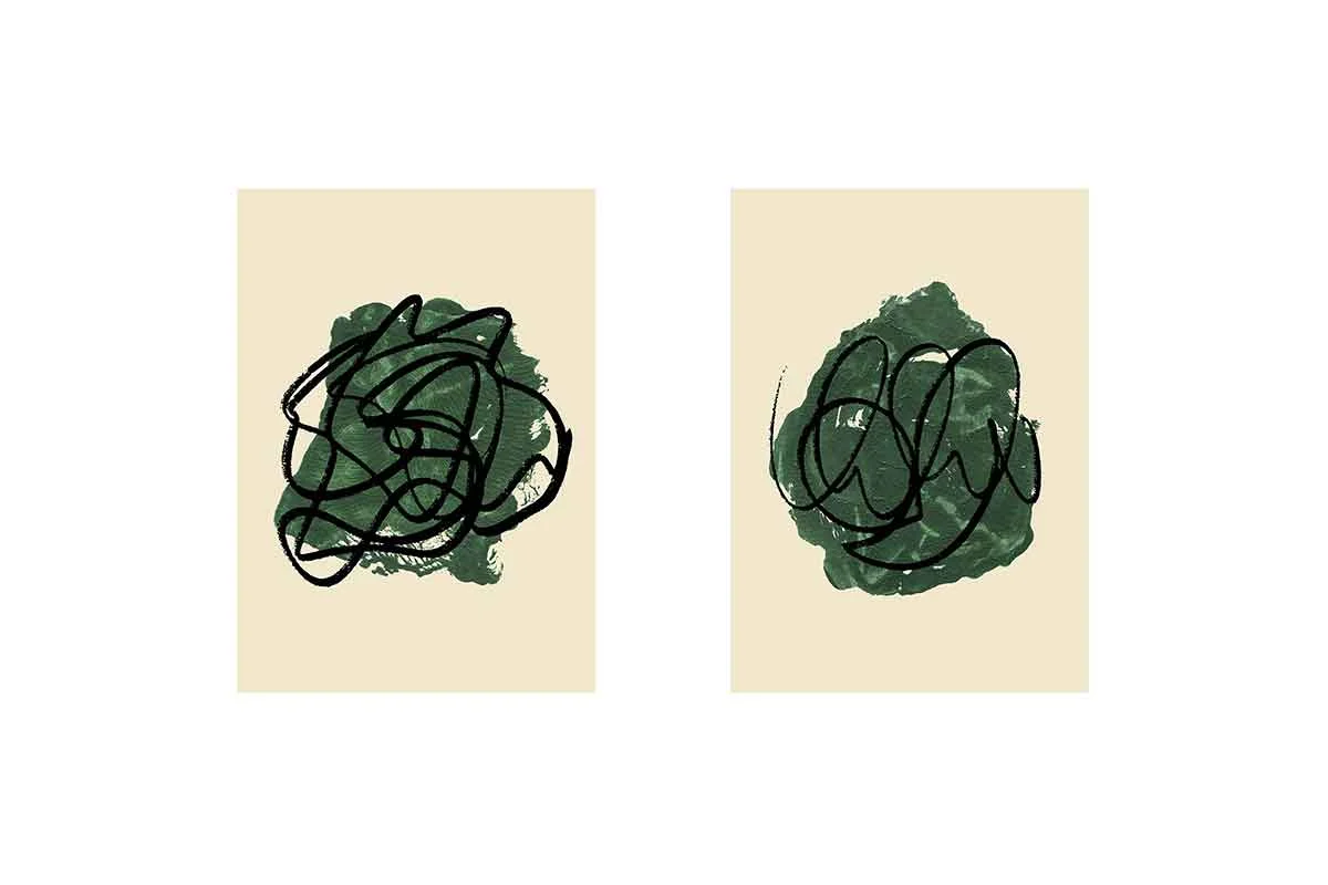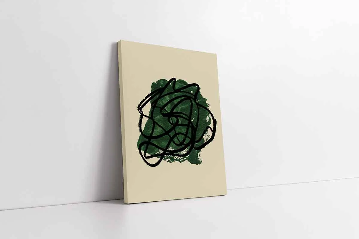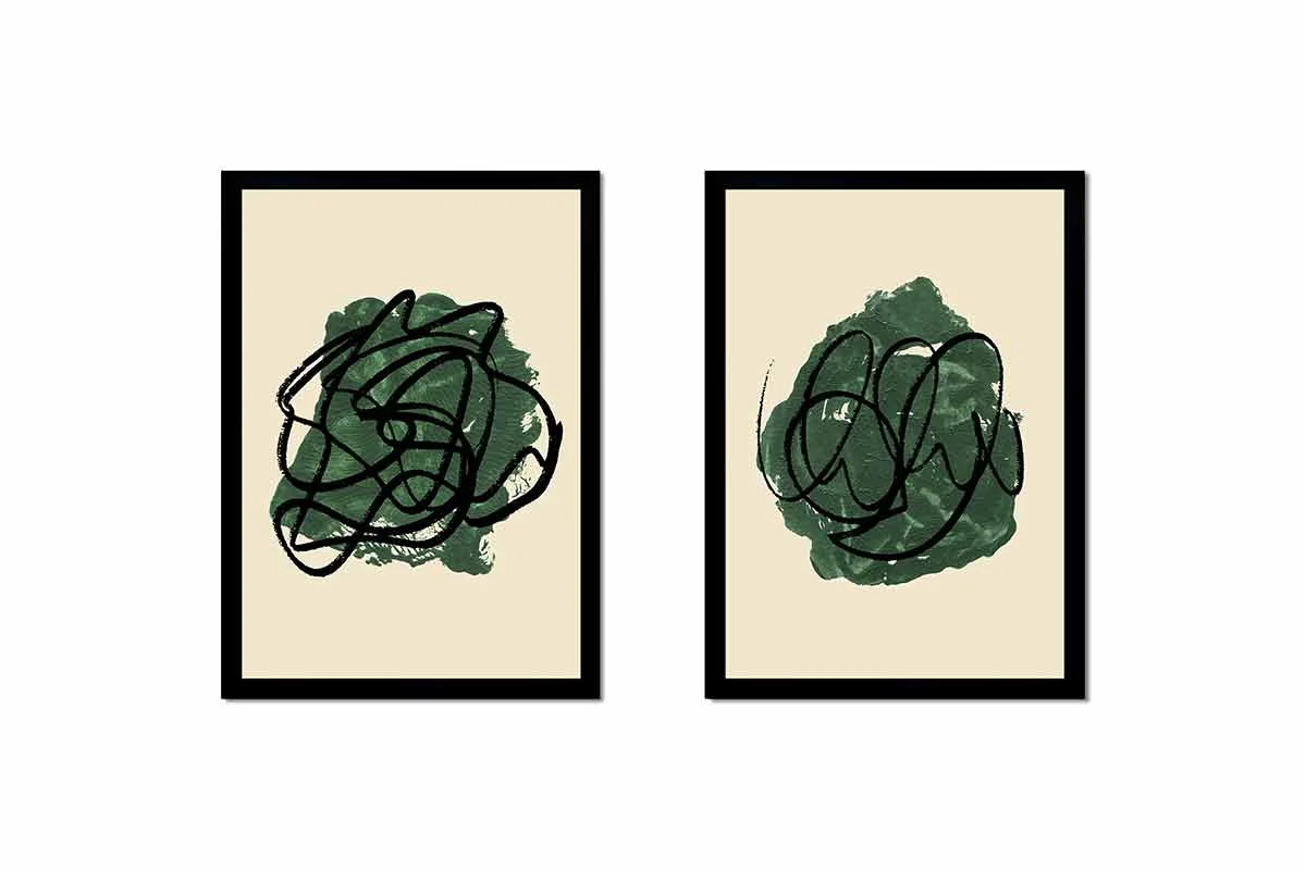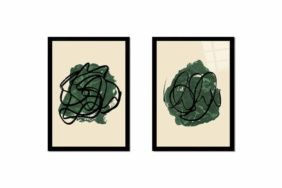 Yeşil Soyut Line Art İkili Kanvas Tablo | Cam Tablo | Mdf Tablo Seti | B33216