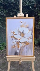 Her tablo, katman katman uygulanan dokuyla hazırlanır; fırça ve spatula izleri sayesinde ışığın yüzeyde bıraktığı uyum bakışlarınızı kendine çeker. Kabartmalı yüzey, gün ışığında ve farklı açılarda değişen bir görsel şölen yaratır.